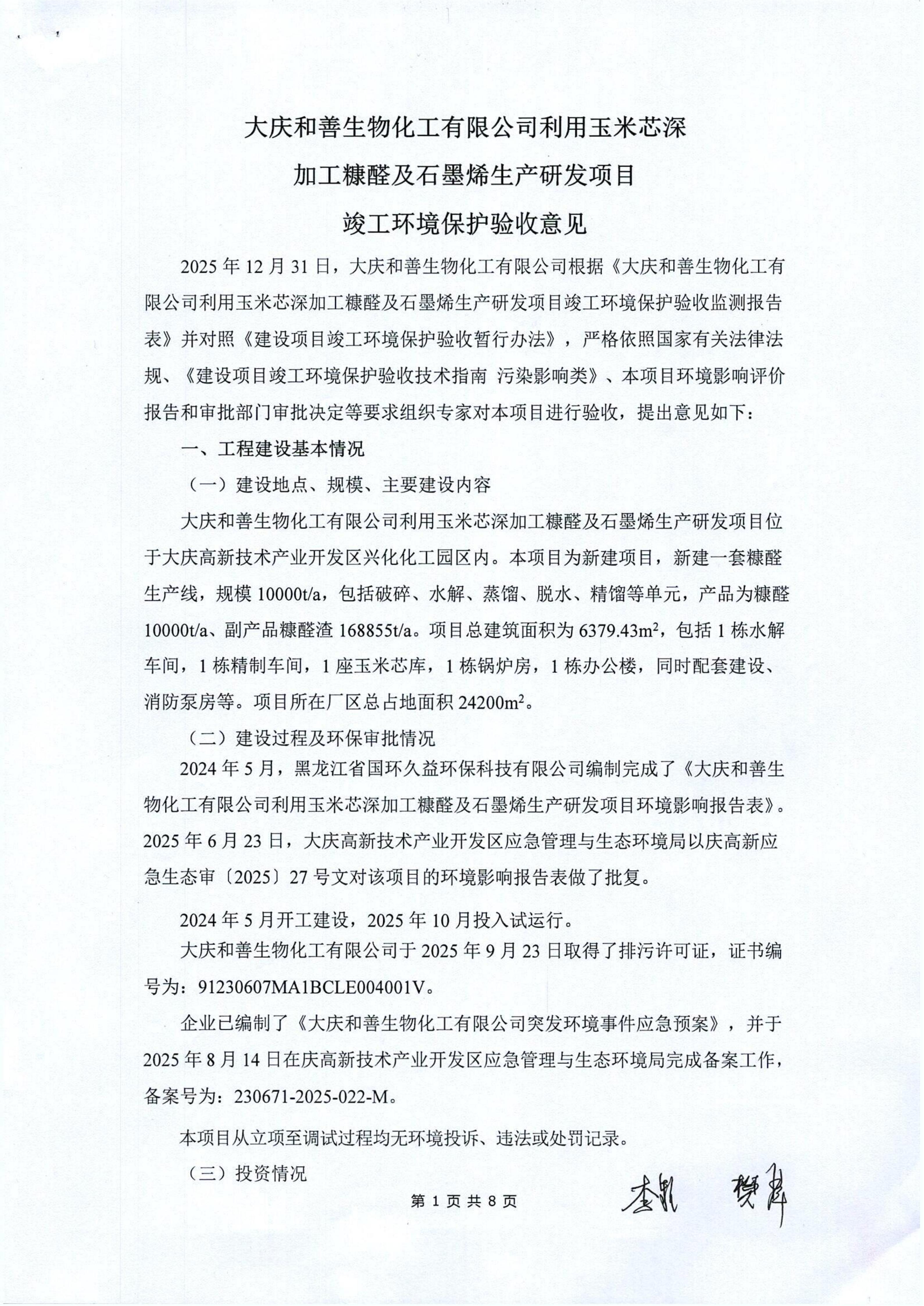验收报告-大庆和善生物化工有限公司利用玉米芯深加工糠醛及石墨烯生产研发项目 - 副本.pdf